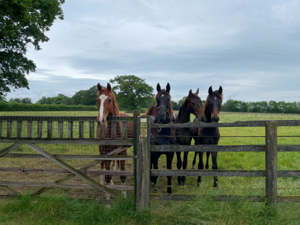 The Hawtins horses turned out in the beautiful Gloucestershire countryside