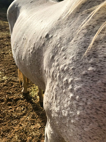 Hives, or urticaria, are raised, fluid-filled bumps that appear on a horse’s skin, can be anywhere from 1-20 cm in diameter. Although they most commonly appear on the neck, back, flanks, legs, and eyelids, in severe cases they can also be seen on the mucous membranes that line the nose, mouth, eyes, and rectum.