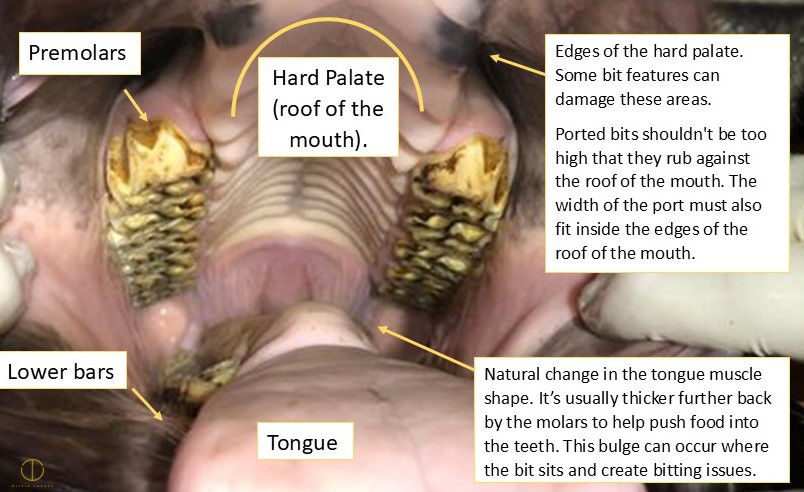 When thinking about bits, we first start by looking inside the mouth to see what space they have and check the current bit isn’t causing damage to those delicate oral structures.