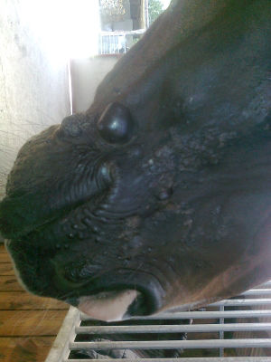 Commonly seen as multiple types of sarcoid present around the horse.