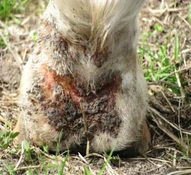 Common signs of Mud Fever include scabs and damaged skin on the heels, hair loss and swelling